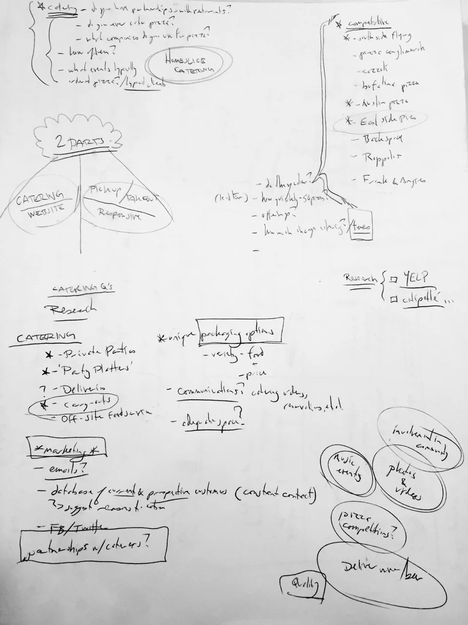 As we jumped in, I realized that it would be important to peg down user personas as soon as possible, realizing catering implied they were not to usual walk-up clientele the restaurant normally caters to.