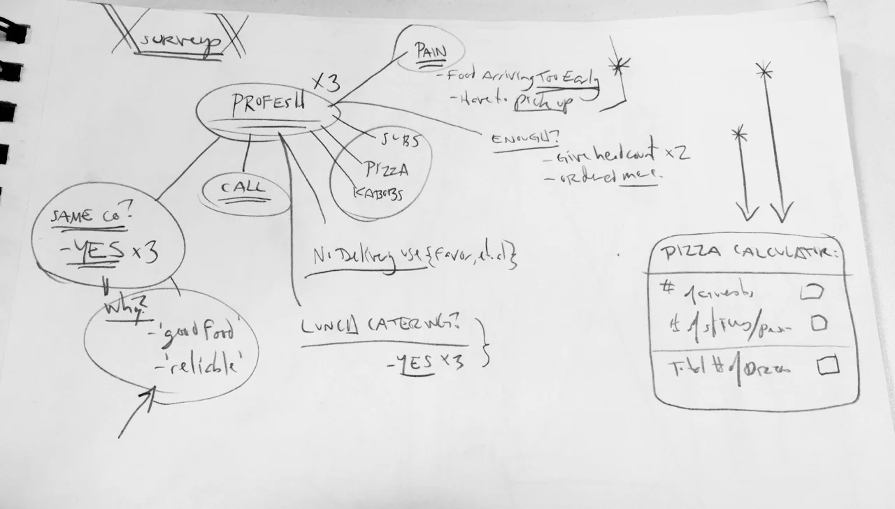 We realized our main users would be those seeking catering for professional and private events. Once we'd created the personas, I created a survey to find users who fit this description. We performed one-on-one interviews with 2 or 3 of each.