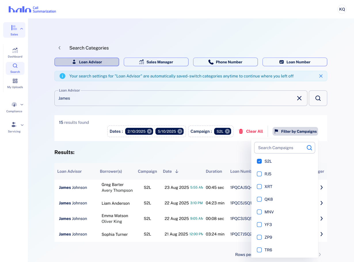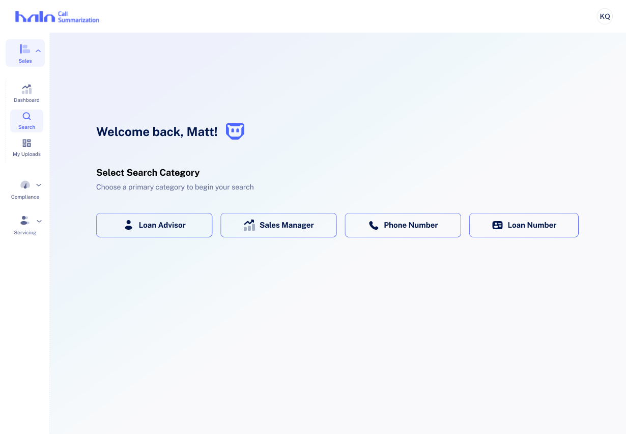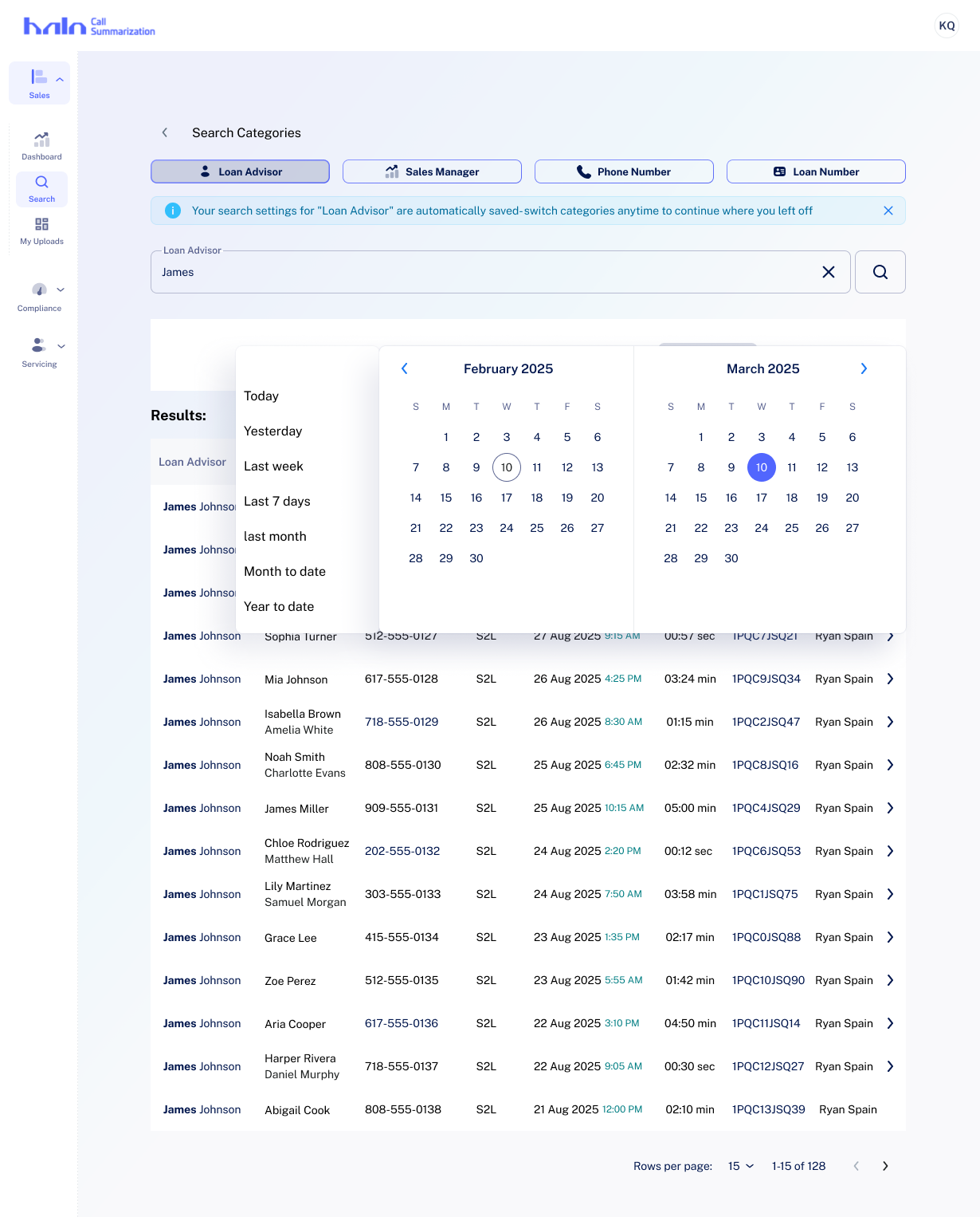 No search capability existed within Halo, Xpanse's AI call summarization platform. Loan Advisors and Sales Managers had no way to look up, sort, or filter call records by borrower, advisor, phone number, or loan ID — the only path to a specific call was manual scrolling.
